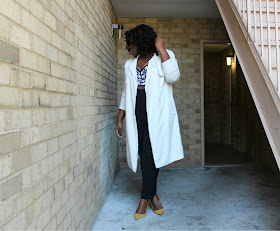 For this look I paired The high waisted trousers with this swim Bustier from the Peter Pilotto for Target collab ( while we are talking about swim have you checked out AVA and VIV swimwear I will probably be purchasing this Piece). Since the bustier has some gray, black and white I decide to go with my gray Trench from H&M ( I also like this one Here & I found so many more great options Here) for outerwear and of course to finish off the look I choose to pair the look with my Mustard Pumps because gray and mustard pair well together. If your looking for some Pumps you should check out this One from Charles David they come in 13 colors and prints, perfect for the upcoming season.